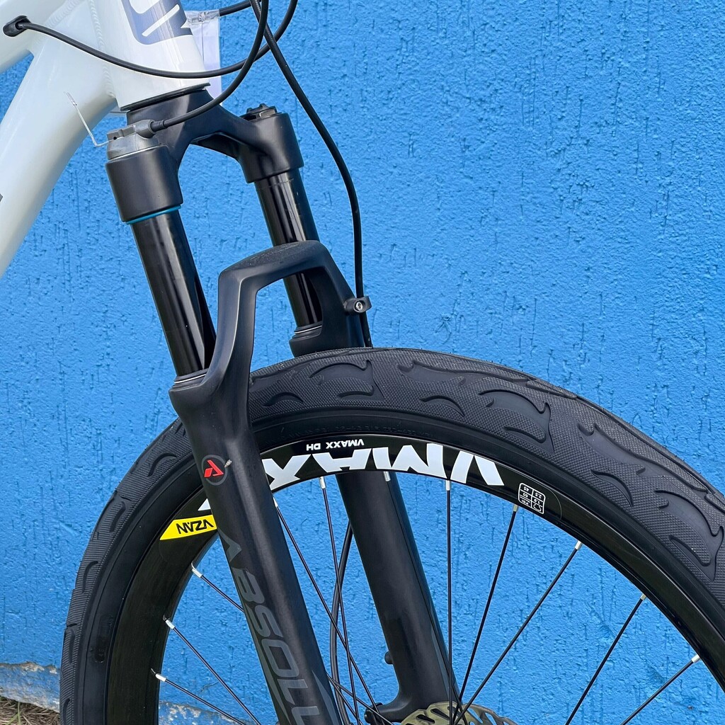 SUSPENSÃO: Equipado com um garfo Suspensão 29 Absolute Prime SL, com 100mm de curso e trava no guidão, para um conforto extra nas trilhas.