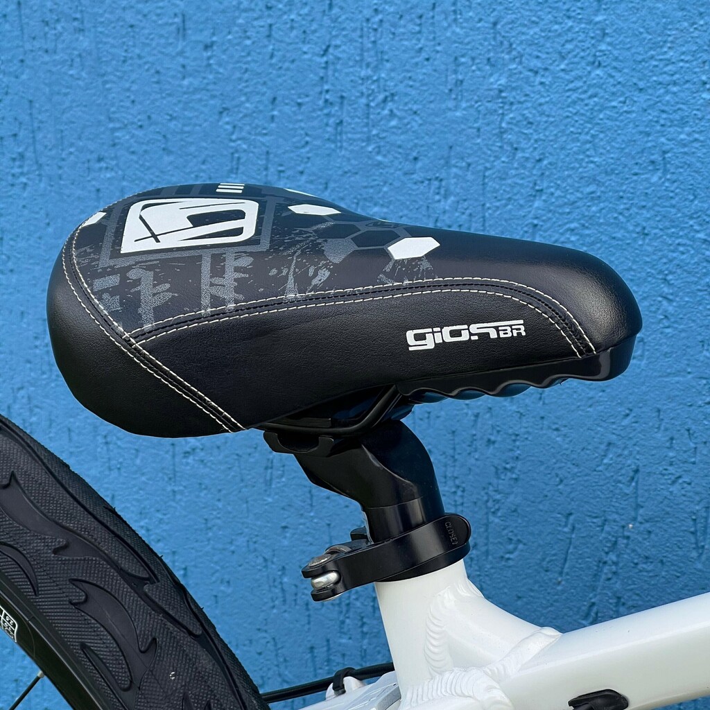 Com um design moderno nas cores branco e preto, essa bicicleta não é apenas funcional, mas também estilosa. O selim BMX GIOSBR e o guidão alumínio MTB LTX proporcionam conforto e controle durante as pedaladas.