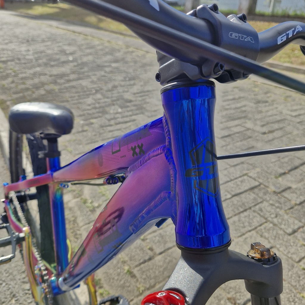 Prepare-se para dominar as ruas com esta bicicleta que é um verdadeiro escândalo de estilo e performance! A Bicicleta GTA Rebel aro 26 com quadro 13,5" na exclusiva cor camaleão vai conquistar os amantes do grau e wheelie que buscam uma bike robusta, leve e cheia de personalidade.