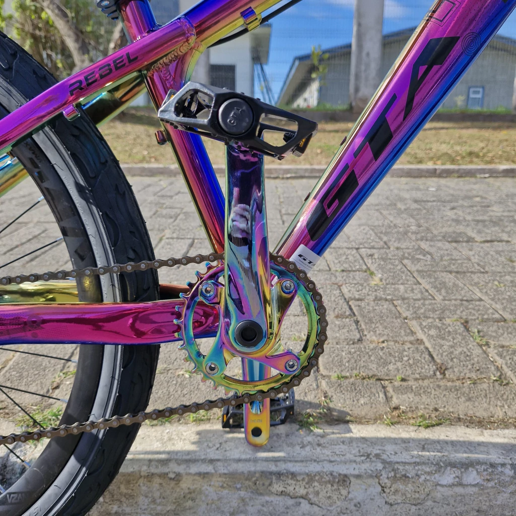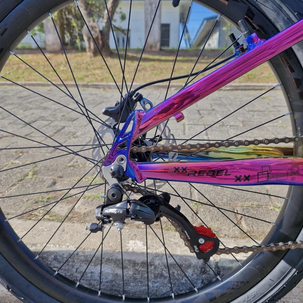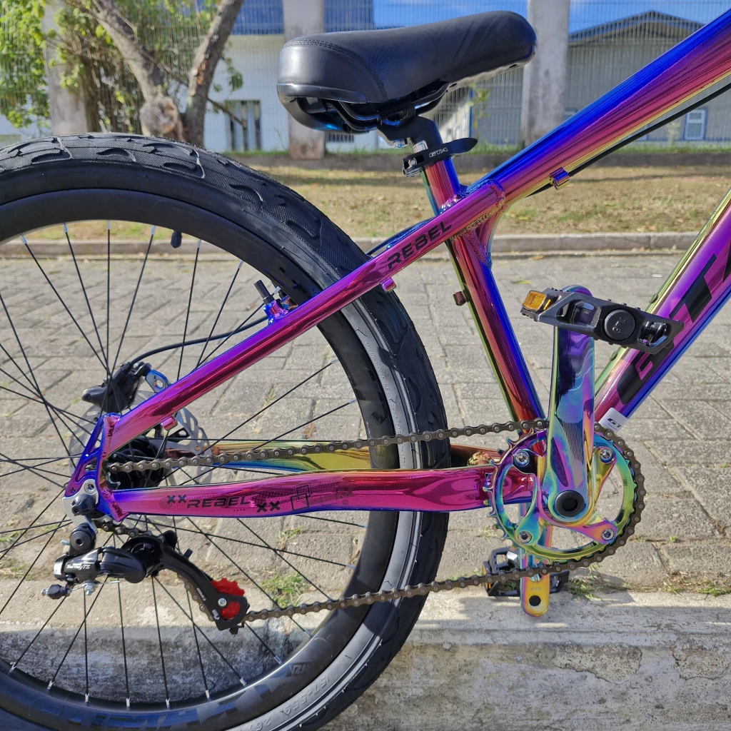 Prepare-se para dominar as ruas com esta bicicleta que é um verdadeiro escândalo de estilo e performance! A Bicicleta GTA Rebel aro 26 com quadro 13,5" na exclusiva cor camaleão vai conquistar os amantes do grau e wheelie que buscam uma bike robusta, leve e cheia de personalidade.